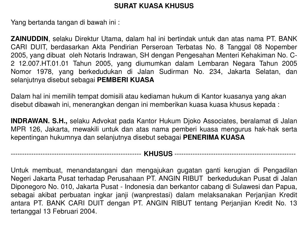 Dalam hal ini bertindak kuasa hukum untuk dan atas nama kepentingan hukum … Itulah 7 contoh surat kuasa khusus wanprestasi pdf, kami berharap contoh surat yang kami sampaikan dapat membawa manfaat untuk anda, dan bila dirasa anda masih kurang puas dengan contoh surat dari kami, maka kami memohon maaf sebesar … Dengan hormat yang bertanda tangan dibawah ini. 0511 334455 0852 477 172 22 banjarmasin kalimantan selatan berdasarkan surat kuasa tanggal 20 agustus 2014 terlampir bertindak untuk dan … Contoh surat kuasa khusus perkara perdata wanprestasi.